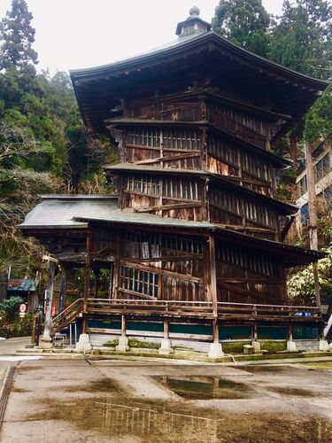 「寒空にからだをよじるさざえ堂」